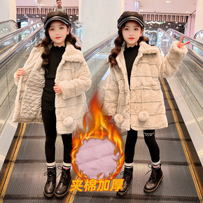 儿童冬季加厚外套新品女童韩版洋气仿兔毛加厚派克服宝...