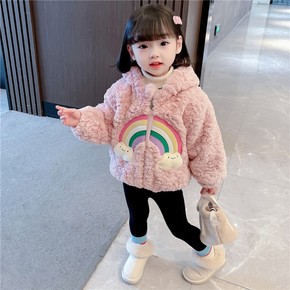 女宝宝彩虹秋冬外套2021新款时髦毛毛外衣女童韩版...