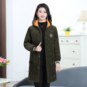 中长款金丝绒棉服冬季女装棉袄加厚加绒夹棉保暖罩衣加...