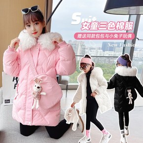 女童羽绒棉中长款2021冬装新款童装韩版中大童儿童...