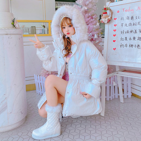新棉衣女中长款少女中学生冬季棉衣棉服宽松厚高初中生...