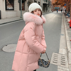 大毛领粉色羽绒棉服女小个子冬季2021新款甜美蓬蓬...
