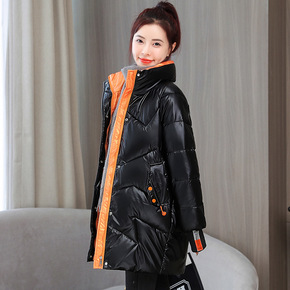 亮面羽绒棉棉衣女2021冬装新款女式韩版中长款立领...