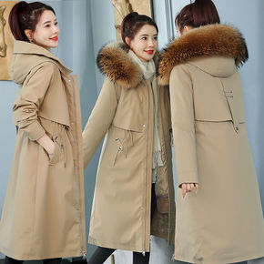 羽绒棉服女2021冬季新款宽松棉衣中长加绒派克服棉...