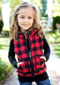 2018冬ins爆款儿童无袖夹棉格子马甲背心上衣外...