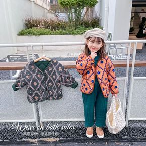 2021年冬装新款小花草莓棉衣外套 女宝宝加绒加厚...