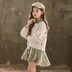 女童套装秋装2022新款韩版儿童格子女孩卫衣裙两件...
