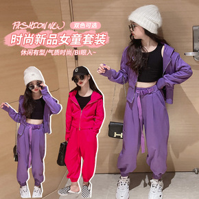 女童休闲套装2021新款韩版儿童开衫外套宽松连帽运...