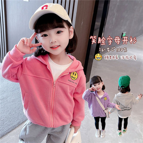 女童2022笑脸卫衣开衫韩版年新款春秋装幼儿外套洋...
