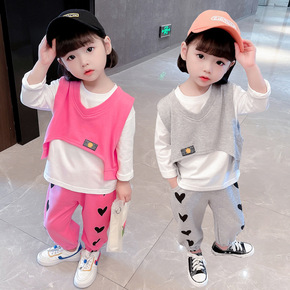 女童秋装洋气长袖套装春秋季新款网红儿童装中小童女宝...