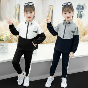 童装女童休闲套装2022秋装新款中大童运动学生拼接...