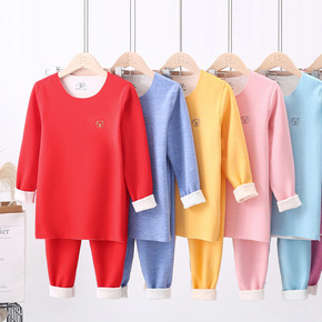 儿童加绒秋衣秋裤秋冬发热德绒保暖纯棉套装男童女童家...