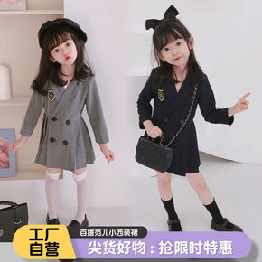 2022春款亲子装JK新品气质双排扣长袖百褶裙赫本...