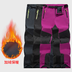 批发运动户外冲锋裤女男软壳加绒加厚秋冬季保暖防风防...