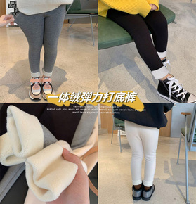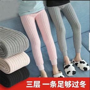 秋冬季加绒内穿一体裤加厚儿童打底裤 男女童三层加厚...
