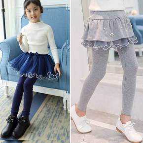 女童打底裤春秋款小女孩打底裙裤假两件裙裤长裤外穿...