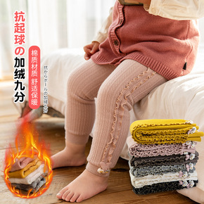 2020冬季ins 百搭儿童打底裤外穿加厚蕾丝坑条...