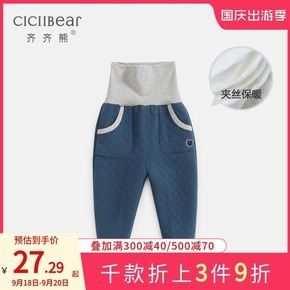 齐齐熊男女宝宝夹棉高腰护肚裤加厚2021秋冬新款婴...
