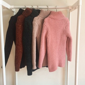 冬款韩版儿童高领毛衣中大童雪尼丝绒纯色打底衫男女孩...