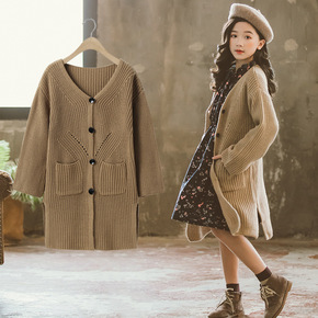 女童毛衣外套针织开衫2021新款童装秋款儿童中长款...