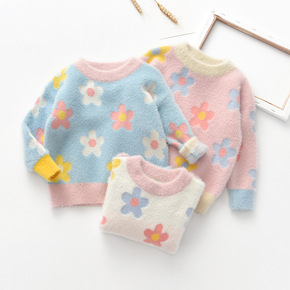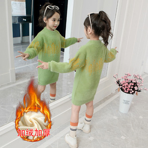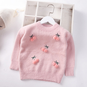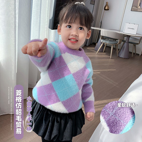 秋冬女童毛衣2021baby中小儿童仿貂毛毛衣加厚...