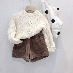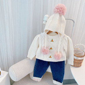 韩国童装2021秋冬女童花朵套头加厚针织衫儿童女宝...