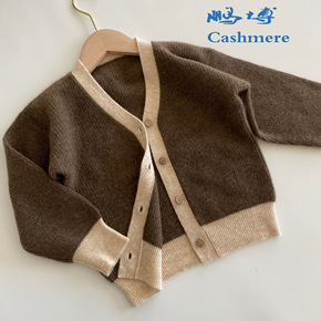 2021春秋新款童装粗毛线间色圆领女童针织衫开衫毛...