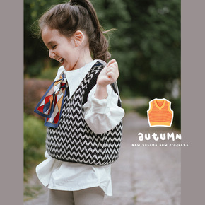 【可混批】女童针织马甲宝宝时髦波浪纹加厚套头背心儿...