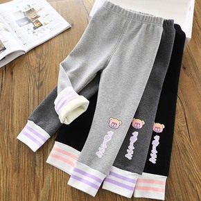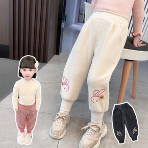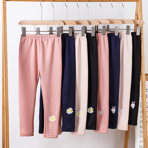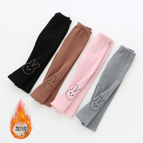 2021童装秋冬新品绣兔子女童加绒打底裤 加厚宝宝...