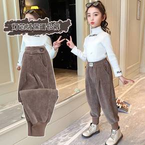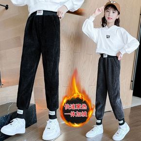 女童裤子春秋冬休闲裤外穿一体绒儿童保暖裤中大童加绒...
