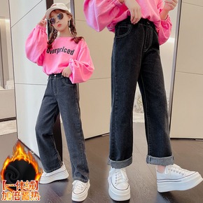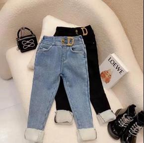 女童牛仔裤秋冬加厚一体绒新款中小童女宝宝长裤时髦洋...