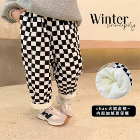 2021冬款新款棋盘格加绒加厚保暖洋气休闲萝卜裤女...