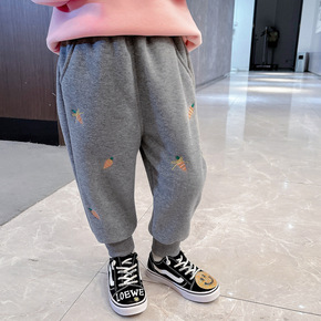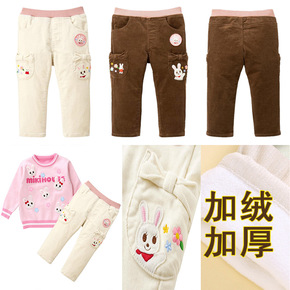 冬款女童加绒加厚运动裤儿童可爱小兔印花裤子童裤童装...