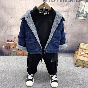 温州童装2019冬季新款韩版加绒牛仔外套搭配中高领...