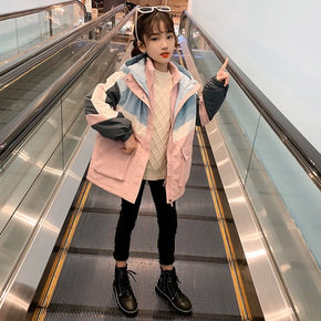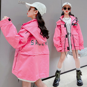 童装女童冲锋衣秋装新款中大童韩版儿童洋气纯色连帽外...