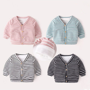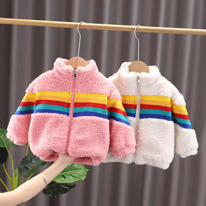宝宝加绒外套女冬装1韩版3岁儿童保暖上衣男条纹婴儿...
