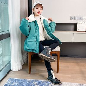 女童加绒外套2021新款韩版儿童时尚洋气中大童上衣...