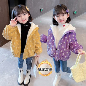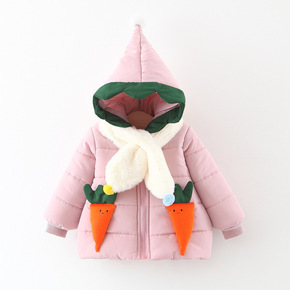 冬季新款女宝宝韩版加绒外套连帽棉袄女童加厚羽绒棉衣...