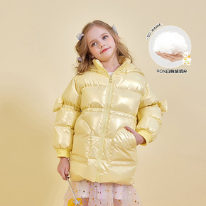 冬季新款90白鸭绒蝴蝶结高腰女童连帽羽绒服品牌童装...