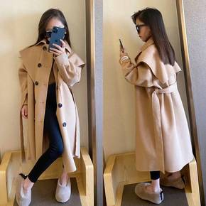 羊绒大衣童儿童驼色仿双面羊绒收腰大衣2021秋冬女...