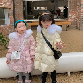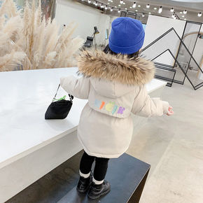 女童冬装洋气中长款羽绒服90白鸭绒宝宝加厚棉服童装...