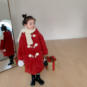 女童加绒外套男女童冬装新款儿童反光上衣长款加厚风衣...