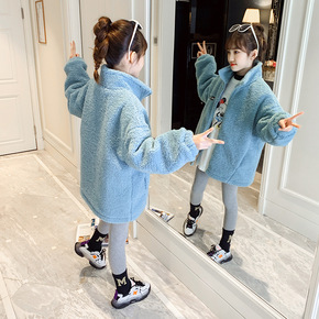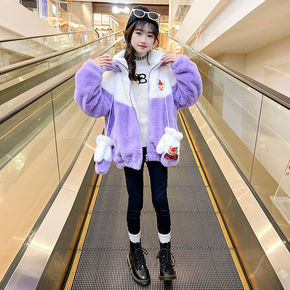 女童加绒外套洋气冬装新款中大童水貂绒上衣厚儿童毛毛...
