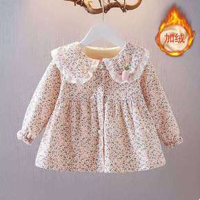 新女宝宝碎花加绒外套洋气秋装女童韩版上衣--岁婴儿...