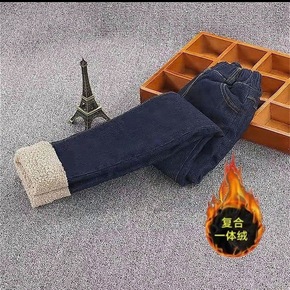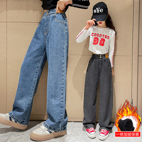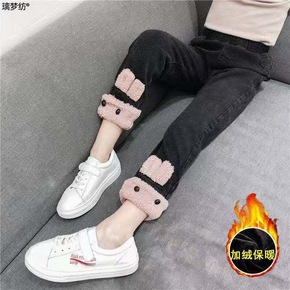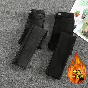 2022款新款儿童冬季棉裤女童加绒加棉牛仔裤女孩一...