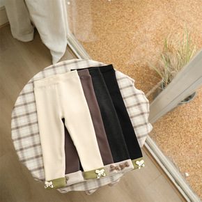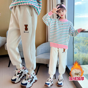 2021冬季童装女童休闲刺绣小熊加绒加厚一体绒卫裤...