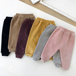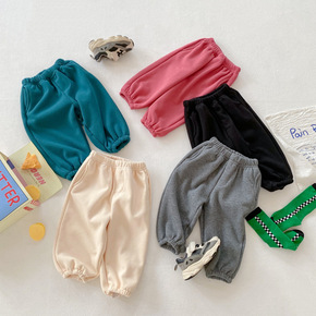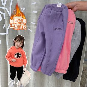 童裤2022冬季新款韩版男童女童纯色加绒卫裤儿童束...