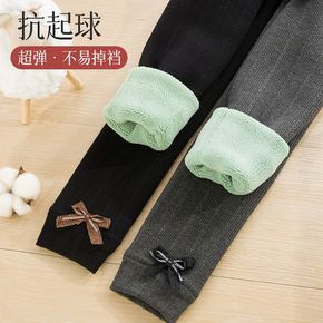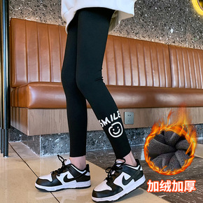 女童加绒打底裤新款秋冬儿童棉质磨毛九分裤中大童白色...