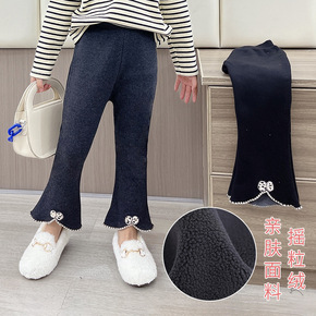 童裤秋冬款儿童女童印花银狐绒加绒打底裤中大童保暖裤...