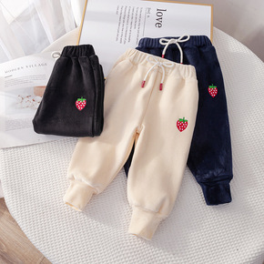 女童运动裤子秋冬款宝宝小童草莓儿童加厚外穿冬装一体...